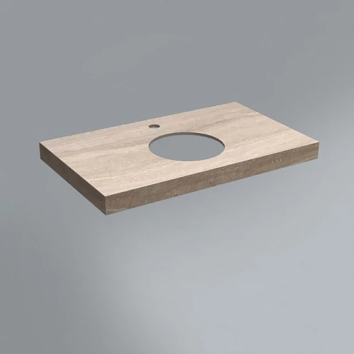 Столешница из керамического гранита Риальто с отверстием под смеситель. Предназначена для использования с тумбами и раковинами серии CANALETTO. Отверстия для раковины и смесителя располагаются в центре. Смеситель устанавливается в столешницу (используйте смесители с подходящим типом установки)