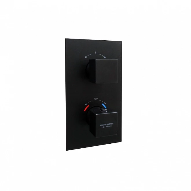 Встраиваемый термостатический смеситель для душа FUTURA с регулировкой температуры, матовый черный с артикулом 67648EKM.01.093 - продукция из коллекции Futura производства Kerama Marazzi