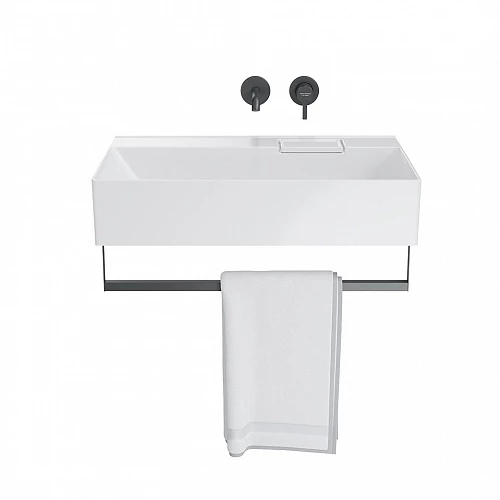 Полотенцедержатель LOGICA 70 подходит для подвесных раковин LOGICA шириной 70 см. Выполнен в черном матовом цвете, конструкция сварная. Крепится винтом снизу раковины в отверстия. В комплектацию входят крепления, гарантийный талон, инструкция по установке держателя.