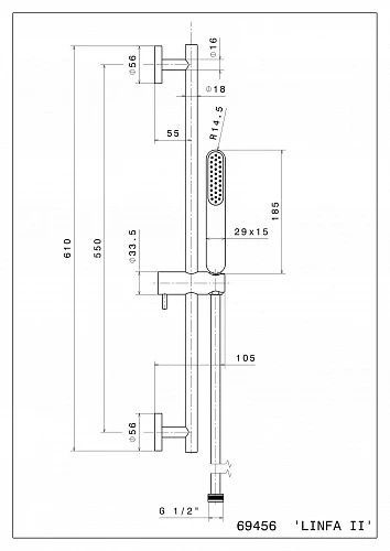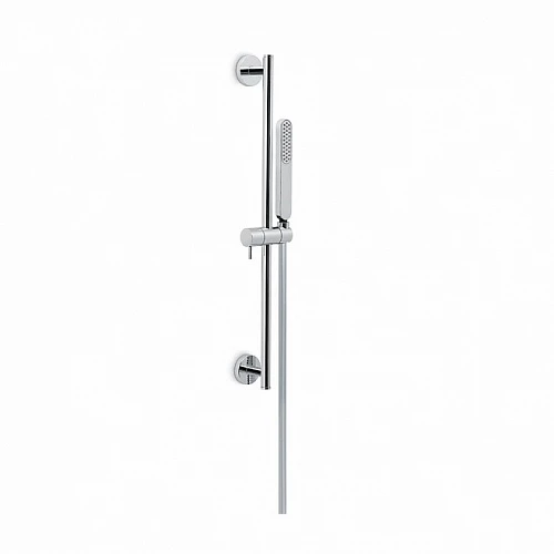 Душевая стойка длиной 150 см с подвижным держателем лейки ручного душа из пластика и шлангом из ПВХ. Без выхода для подачи воды.