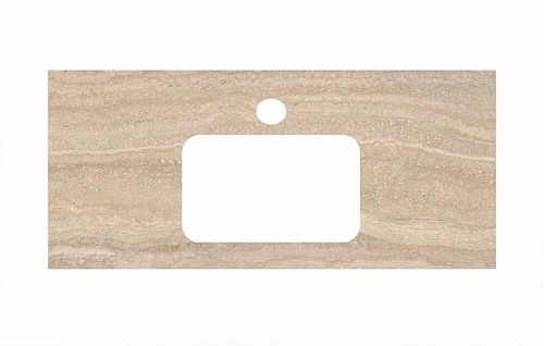 Столешница из керамического гранита Риальто с отверстием под смеситель. Предназначена для использования с тумбами и раковинами, встраиваемыми сверху, серии PLAZA Classic. Отверстия для раковины и смесителя располагаются в центре. Смеситель устанавливается в столешницу (используйте смесители с подходящим типом установки)