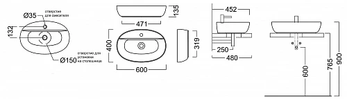 Раковина PLAZA 60х40 см накладная с отверстием под смеситель - подходит для столешниц PL1 с артикулом PL.wb.60.1 - продукция из коллекции Plaza производства Kerama Marazzi